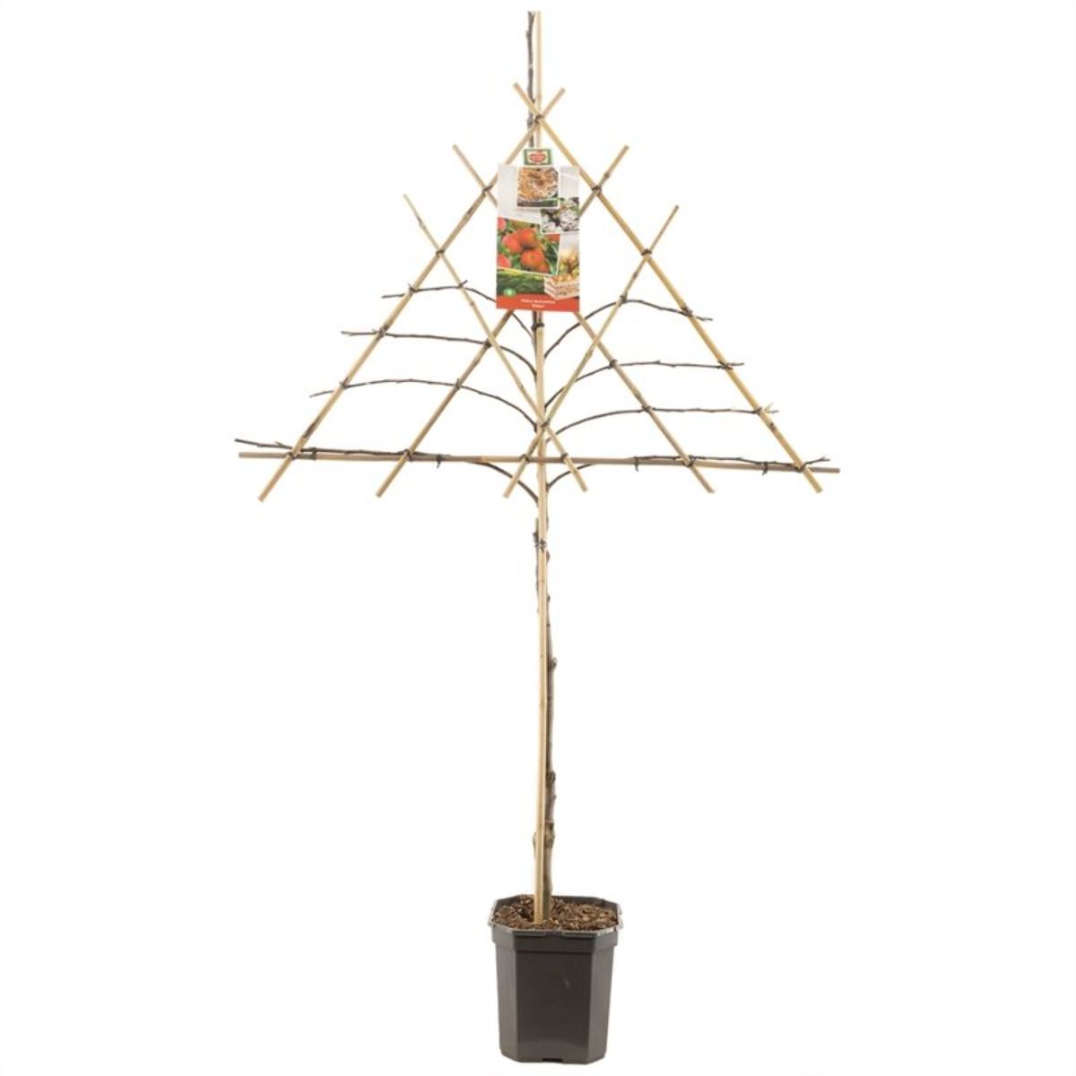 Maak bij het snoeien van de boom, gebruik van de techniek 'vormsnoeien'., Het doel van dit snoeiproces is het , vormen van een mooie, ronde, boomkroon met sterke gesteltakken., Bij een jonge boom zijn het de twijgen, die als toekomstige gesteltakken dienen., Snoei het jonge boompje zo, dat sterke, gesteltakken in een mooie vorm kunnen, groeien. Kies voor 4-6 gesteltakken en, snoei elke verlenging van de , gesteltakken jaarlijks voor de helft in., Zorg dat er voldoende ruimte blijft, tussen de gesteltakken en groeiende, zijtakken zodat er voldoende zonlicht, en ruimte in de kroon komt