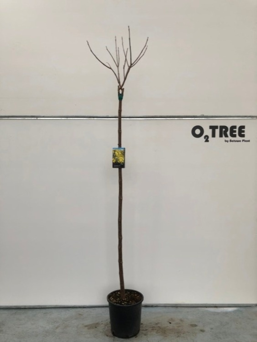 Bredt utvoksende, bladfellende tre. Høyde 6 - 8 meter. Store, gyldengule blader. Hvite blomster med gult hjerte i opprette klaser. Juni - juli. Lange, tynne belger om høsten og vinteren. Tåler beskjæring godt.