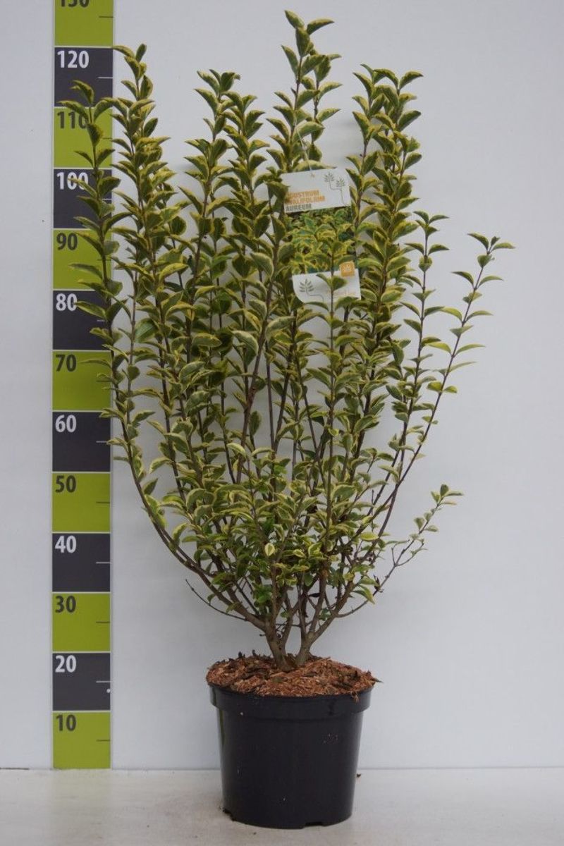 Halvvintergrønn busk. Hurtigvoksende. Høyde cirka 3 - 4 m. Er meget god å beskjære. Kan brukes som hekkplante. Gulprikket blad. Små, hvite blomsterklaser om sommeren. Lokker til seg sommerfugler. Sorte bær på ettersommeren.