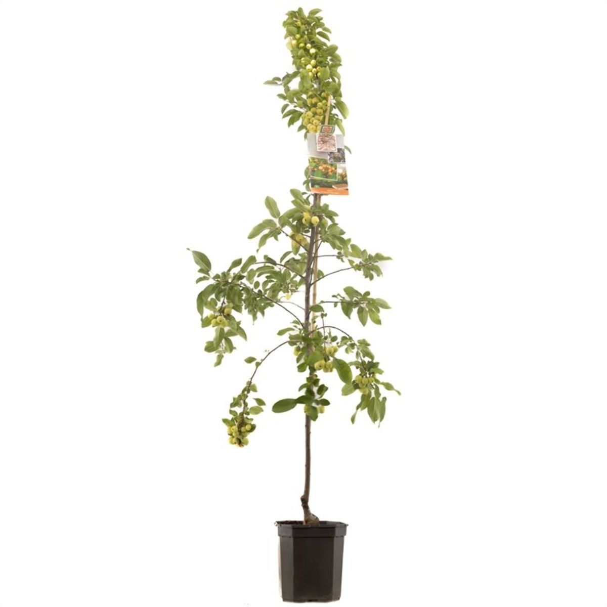 Kraftig, bladfellende busk til lite tre. Høyde cirka 4 - 6 m. Friskgrønt blad, om høsten gult. Blomsterknoppen er mørkt rosa. Blomstene er hvite. Riktblomstrende. April - mai. Sol. Mange oransjerøde prydepler. Ettersommeren. Næringsrik jord.