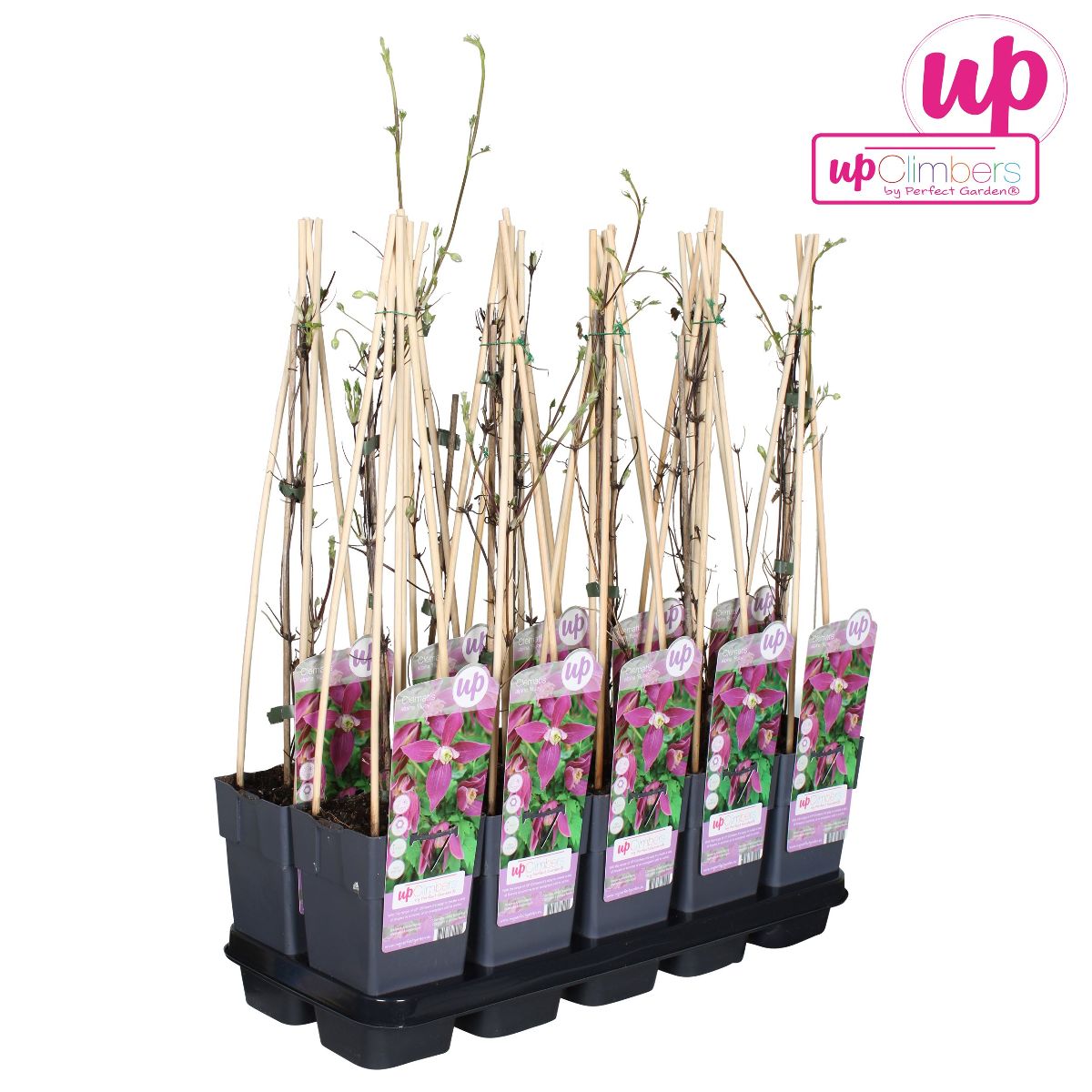 Kompakt sort med dyp rosa blomster. Blomstrer juli–september.H6 Egner seg til mindre klatrestøtte eller krukke. H: 1,5–2 m, B: 1 m.
