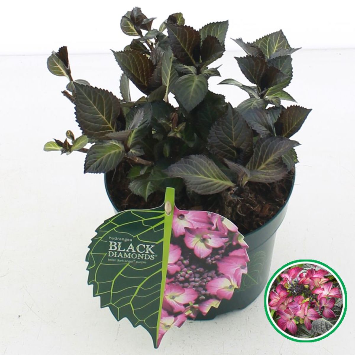 Hydrangea m. Black Diamonds Dark Angel Purple ('Dark Angel')