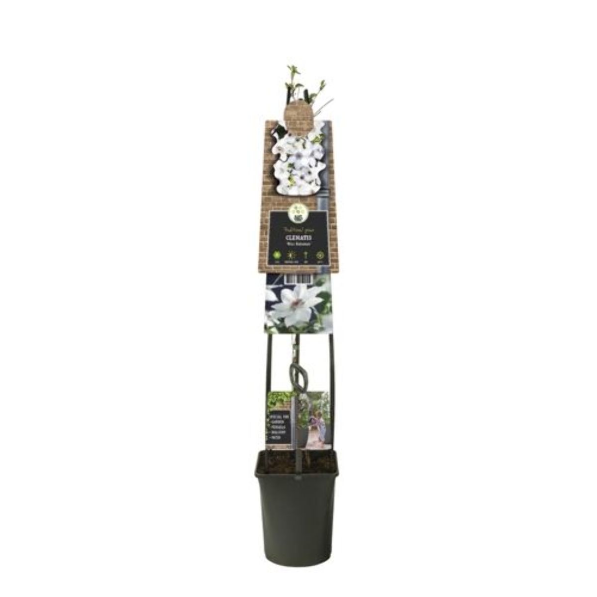 Bladfellende, kompakt klatreplante inntil 2 meter høy. Blomstring i juni - juli og september - oktober. Blomstene har en diameter på 12 - 15 cm. Rent hvite. Svakt duftende. Rik blomstring. Dekorative frøhoder. Sol. Fruktbar jord.