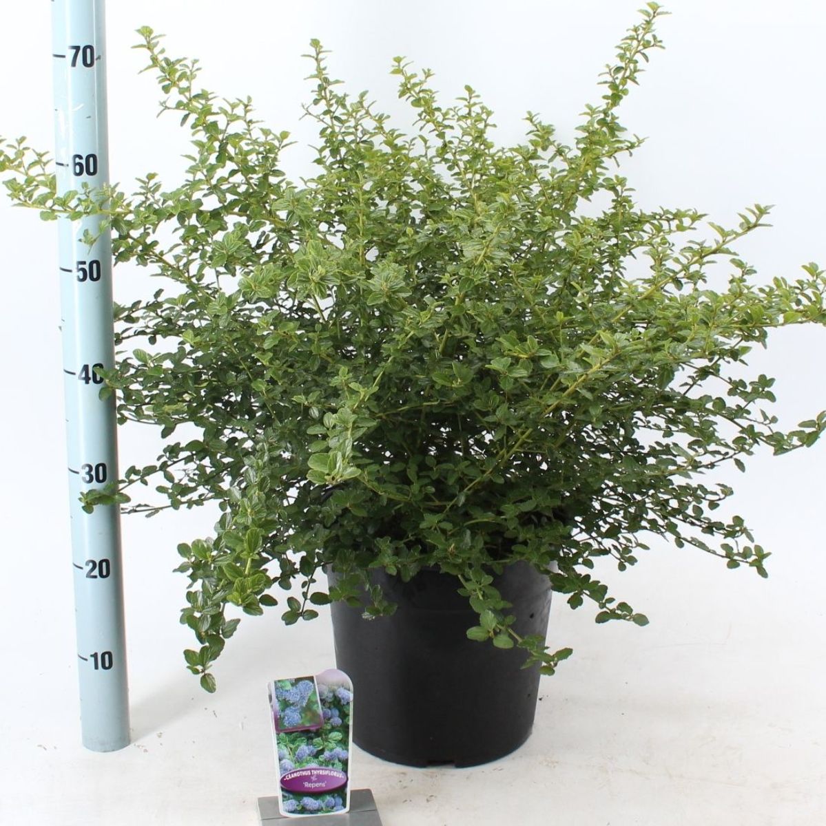 Lav, bredt voksende busk. Høyde ca 0,5 meter. Beholder bladene. Glinsende, grønt blad. Tallrike, blekblå blomster i store klaser. Våren. Solrikt voksested. Følsom for frost, plantes på et lunt sted.