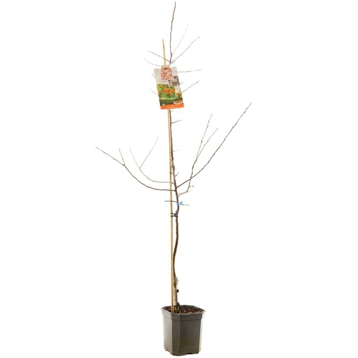 Kraftig, bladfellende busk til lite tre. Høyde cirka 4 - 6 m. Friskgrønt blad, om høsten gult. Blomsterknoppen er mørkt rosa. Blomstene er hvite. Riktblomstrende. April - mai. Sol. Mange oransjerøde prydepler. Ettersommeren. Næringsrik jord.
