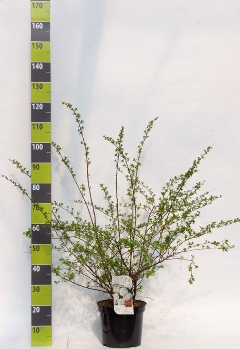 Busk inntil 2 m høy. Hengende kvister. Bredt, mørkegrønt blad Bladfellende. Klart hvite blomster i små skjermer. Riktblomstrende. Mai - juni. Hvert år klippes noen gamle grener bort. For alle jordtyper. Sol.