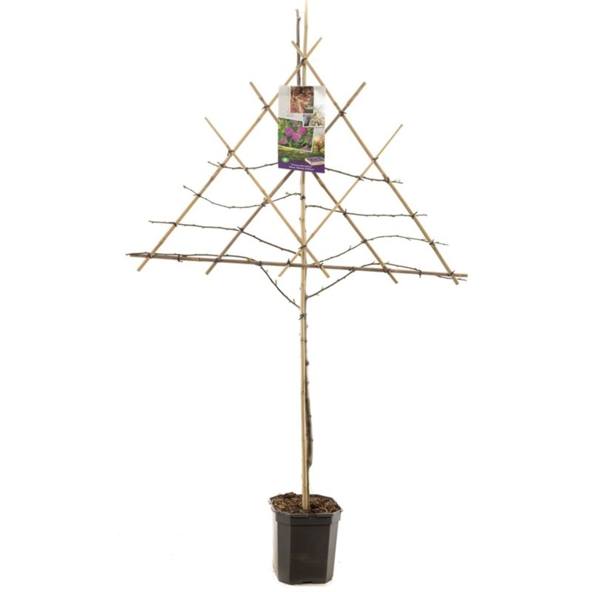 Lite tre med høyde på inntil cirka 5 m. Drives også på halvstamme eller lav stamme. Hvitrosa blomstring om våren. Saftig, søt, rund plomme. Rødlilla. Innhøstningstid august. Kryssbestøvere: Ontario, Opal, R.C. Verte, R.C. d Oullins.